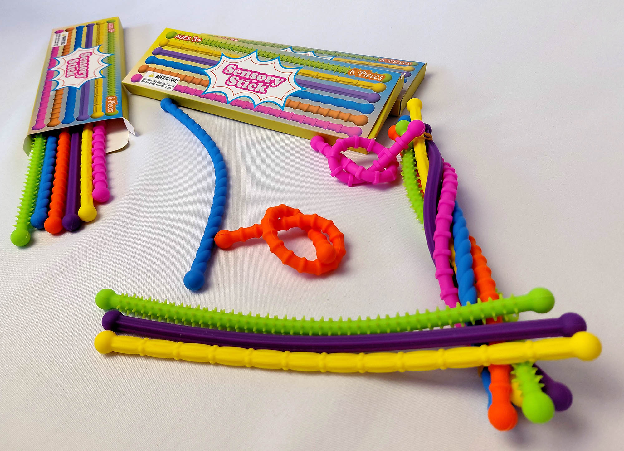 Disponibles: pelotita multicolor, set de cuerdas sensoriales, squishies y las jirafitas estirables.
