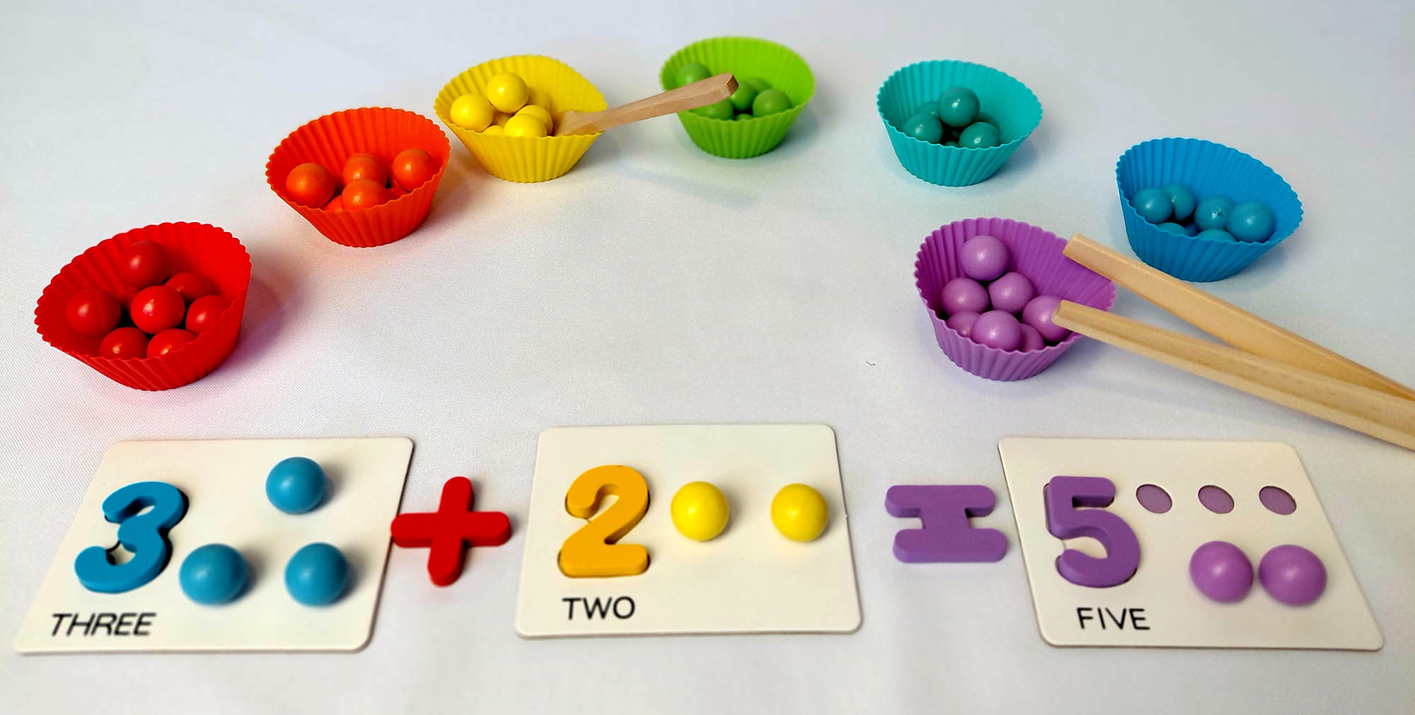 Es un material magnífico que favorece la coordinación óculo-manual y el pensamiento lógico a través de la agrupación, clasificación por colores y el conteo. Plantea el uso de tarjetas caladas, con atractivas ilustraciones para establecer correspondencia número-cantidad al ir colocando las pelotitas de colores usando pinzas, cuchara o palillos. ¡Desafío a la concentración!